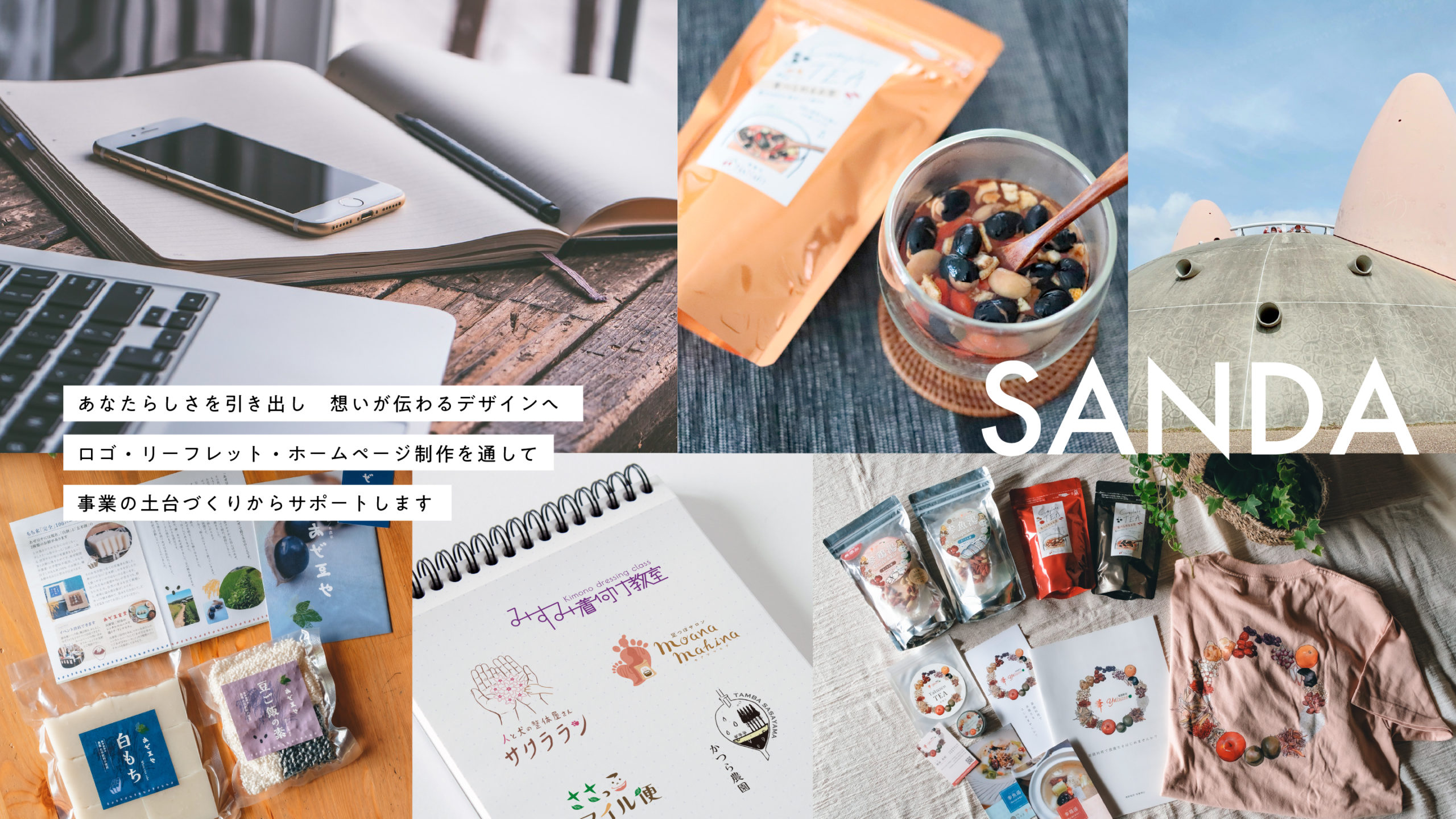 ロゴやリーフレット、ホームページなど、事業を伝えるためのツールを制作するだけでなく、事業の魅力や方向性を整理しながら、デザインの土台づくりや設計の段階からサポートしています。